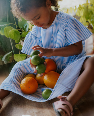 En elegant og tidløs Seersucker Dress fra Copenhagen Colors, lavet i 100% GOTS-certificeret økologisk bomuld. Den lette og bløde seersucker-kvalite...