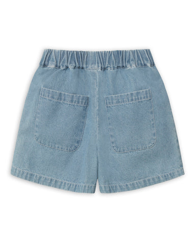 Klassiske denimshorts i let vævet bomuld med elastik i taljen for en behagelig pasform. Shortsene har sidelommer, perfekte til små skatte, og et ru...