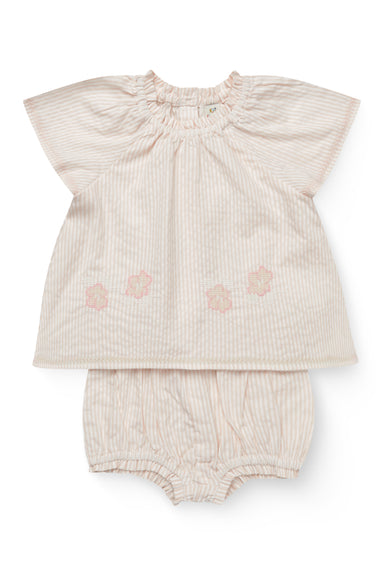 Det søde Seersucker Baby Set fra Copenhagen Colors er perfekt til varme dage, hvor komfort og bevægelsesfrihed er i fokus. Sættet består af en let ...