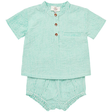 Det søde Seersucker Baby Set fra Copenhagen Colors er perfekt til varme dage, hvor komfort og bevægelsesfrihed er i fokus. Sættet består af en let ...