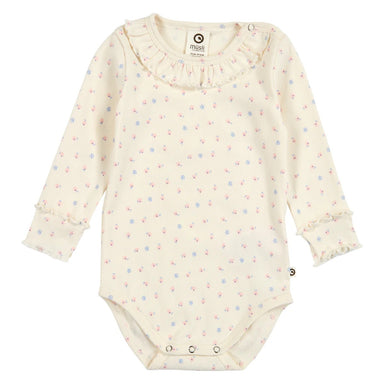 Sød og fin body med lange ærmer og med et sødt gennemgående print af små blomster. Bodyen åbnes i bunden og i halsåbningen med trykknapper. Frems...