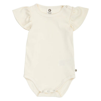 Skøn body i lækker blød og strækbar rib kvalitet. Bodyen har smukke flæse ærmer som gør bodyen ekstra fin og feminin. Bodyen åbnes i bunden og i ...