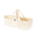 Polstret dukkelift med bløde stropper, dekorativt kantbånd og muslingekanter.