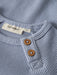 Den klassiske O-hals og de lange ærmer med ribmanchetter sikrer en god pasform, mens trykknapper i skridtet gør bleskift nemme i hverdagen. En diskret knaplukning giver et fint og funktionelt finish.