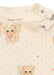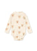 Blød bodystocking i økologisk bomuld med dekorativt hulmønster. Med trykknapper ved benene og venstre skulder, som gør det nemt at klæde barnet på.