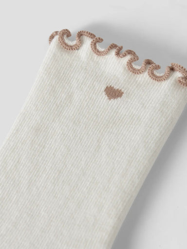 Forny dit barns basisgarderobe med Dertrud strømper fra Lil’ Atelier. Bløde og elastiske i ribstrik, med fine flæsedetaljer, som giver et tidløst o...
