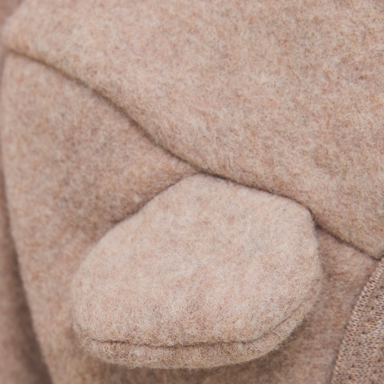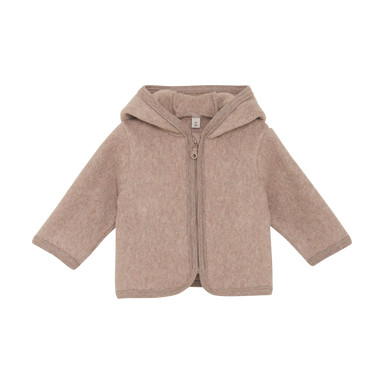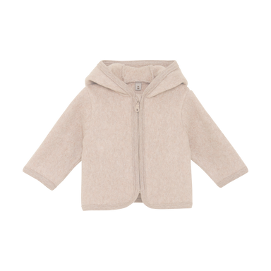 Sød fleecejakke med to små bjørneører på hætten fra HUTTEliHUT. Jakken er lavet i 100% bomuld, som føles ekstra blød. Lukkes med lynlås med hage...