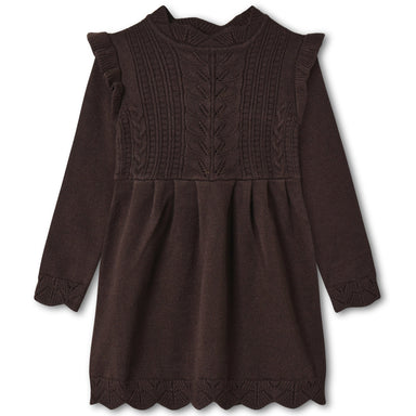 En smuk, strikket kjole i en blød kvalitet. Kjolen har lange ærmer, en bølget krave samt fine mønstrede detaljer ved både ærme- og nederste kant.I ...