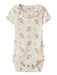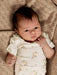 Bodyen er fremstillet i en eksklusiv og blød jersey-kvalitet bestående af 57% økologisk bomuld, 38% TENCEL™ lyocell og 5% elastan. Materialet er åndbart, smidigt og ekstra behageligt mod sensitiv babyhud. Det fine all-over print på den lyse Coconut Milk-bund skaber et roligt og nordisk udtryk.