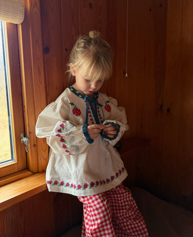Den fine Heart Embroidery Blouse fra Copenhagen Colors kombinerer et klassisk udtryk med søde, legende detaljer. Blusen er lavet i 100% GOTS-certif...