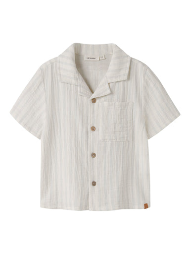 Skab et sødt og behageligt outfit til dit nyfødte barn med denne Lil’ Atelier NBMFIBERT SS Loose Shirt. Skjorten har korte ærmer, skjortekrave og e...