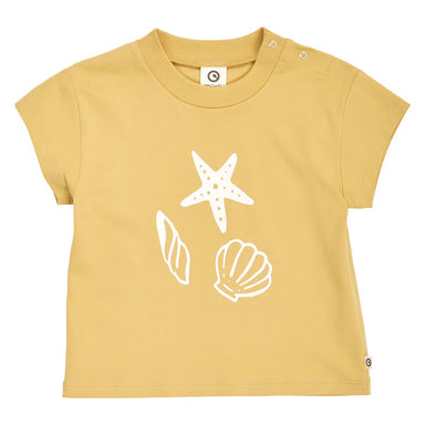 Skøn T-shirt med korte ærmer og med et fint front print af havets dyr. Perfekt til det rigtig varme vejr da kvaliteten er let og luftig at have p...