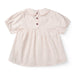Den klassiske seersucker-kvalitet i fine striber giver et tidløst og nordisk udtryk, mens det lette og åndbare materiale gør sættet ideelt til både leg og afslapning. Et skønt sommersæt, der både er praktisk og charmerende.