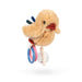 De forskellige teksturer stimulerer barnets sanser, mens den blide ranglefunktion vækker opmærksomhed og understøtter den tidlige motoriske udvikling. De praktiske håndtag gør Peluche Mio let at holde fast i – både hjemme, i barnevognen og på farten.
