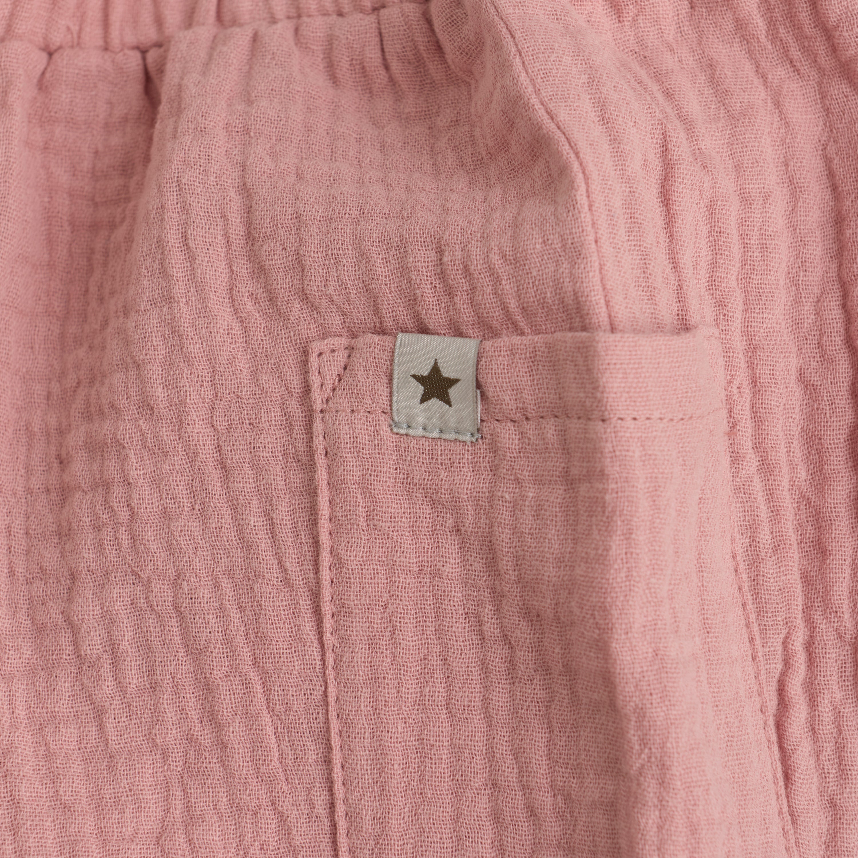 Flotte ensfarvede muslin bukser fra HUTTEliHUT. Bukserne er lavet i 100% bomuld, som føles blød og behagelig mod huden. Elastik i taljen og benåbningerne sikrer en god pasform. En lomme på hver side. Certificeret i hht. OEKO-TEX® STANDARD 100 |