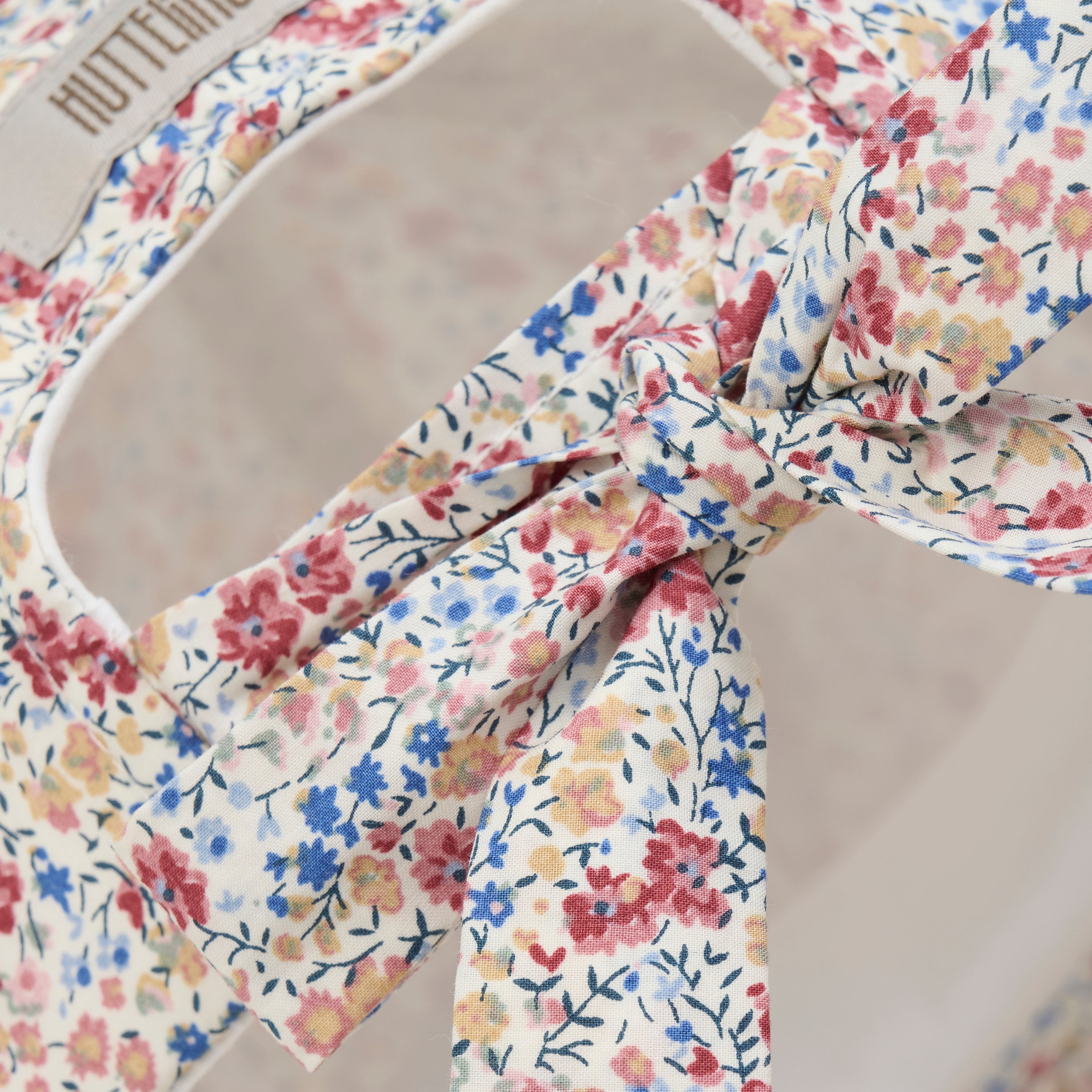 Sød blomstret kasket fra HUTTEliHUT. Kasketten er lavet i 100% bomuld og kan købes i flere forskellige farver. En lukkestrop bagpå sikrer individuel tilpasning til barnets hovedform, med en fin sløjfe til pynt der kan bindes op. Perfekt til at give lidt skygge på en varm sommerdag. Certificeret i hht. OEKO-TEX® STANDARD 100 Cert. No. 2276-364 DTI, Made with Liberty Fabric |