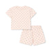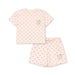 Klassisk sæt i økologisk bomuld med T-shirt med korte indsatte ærmer og bløde shorts med elastik i taljen.