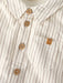 Den smukke turtledove-farve og fine striber giver et elegant, nordisk udtryk, mens bedstefarhalsen og knaplukningen foran fuldender designet. Trykknapper i skridtet gør det nemt at skifte, og den regular pasform sikrer god bevægelighed.